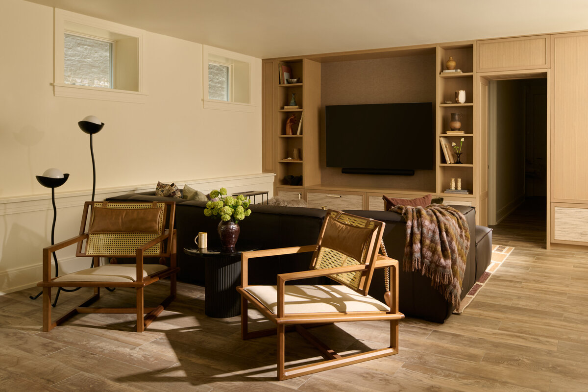 Inspired by Earth’s most vibrant and diverse landscapes, this Lakeview Greystone was designed for the refined naturalist. From the drywall to the pillow inserts, ethically sourced and organic materials were a priority to these clients, taking us to all corners of the earth to source the perfect pieces. A holistic lifestyle and a love for modern practical design are the hallmarks of this home, creating a relaxing and inviting space for the family to watch movies, host sleepovers, and make art.